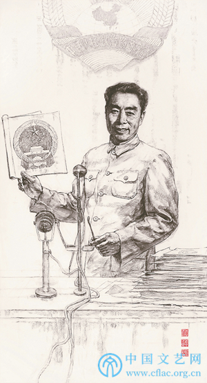 对于三位画家而言,“丹心谱”三个字重逾千斤,从中可以感受到周恩来总理为国为民的一片丹心,和无私奉献、鞠躬尽瘁,为中国人民谋幸福、为中华民族谋复兴的崇高风范和伟大精神。画家们年少时学到的周恩来总理“为中华之崛起而读书”的志向,让“做一个有理想、有道德的人”的信念从小就深深植入了心灵,给了他们不畏艰辛、追求梦想的勇气和鼓励,而中央美术学院严谨的学院派教学理念、老师们的言传身教、国际艺术视野的开阔等,在让他们奠定扎实深厚的基本功之上,升华了对艺术创作的理解和追求。 “我们画总理、学总理,就是要表现周总理上下求索、英勇奋斗的人生足迹,带着怀念、带着思索、带着坚守,来感受、触摸总理的坚毅与温情。”李世刚说。