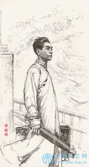 丹心谱之一“难酬蹈海”(纸本木炭素描)