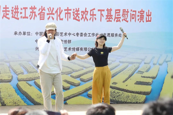 曾获得第十四届大众电影百花奖最佳女配角奖,已有四十一年戏龄的演员阎青妤已多次参加中国电影家协会组织的文艺志愿服务活动。她和搭档田英男为观众们献上了歌曲《新红梅赞》,她表示,“兴化的新农村建设让人赞叹”,作为演员,能够通过另外一种歌唱的方式歌颂先辈、歌颂祖国,感觉非常欣慰。演员要多参加这样的活动,只有深入基层,才能更好塑造新的角色。