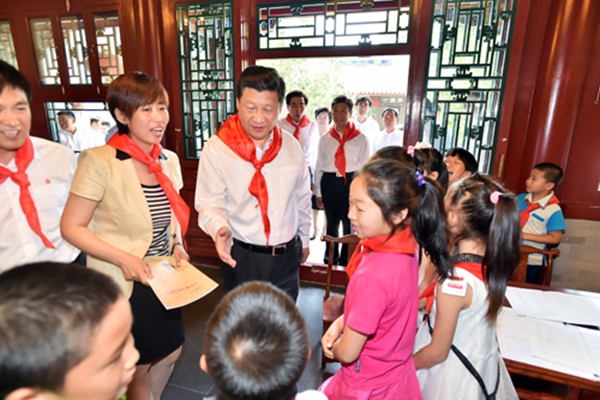 2014年5月30日,六一儿童节前夕,习近平同志来到北京市海淀区民族小学看望少年儿童。