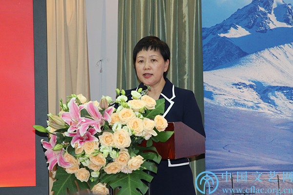 新疆文旅厅党组成员、副厅长余洁向摄影润疆小分队授旗