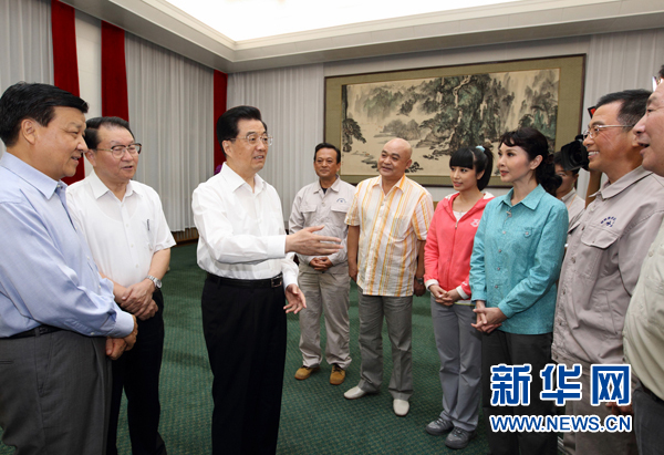 胡锦涛在观看话剧《郭明义》并接见剧组主创人员时勉励文艺工作者