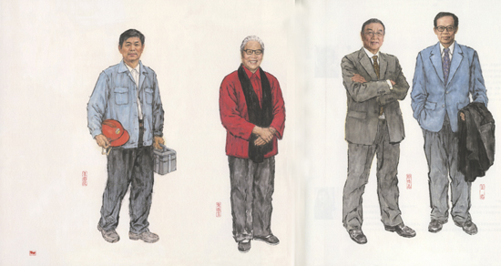 此次展览共展出五幅巨幅画作,其中2m*8m油画3幅,2m*8m国画1幅和2m*16m国画1幅,劳模们依次出现在这五幅画作中。这个历时半年,数易其稿的巨大工程皆出自中国美术学院老中青三代著名画家之笔。在以中国美院院长许江为领军人物的创作团队中,集结了中国美术学院副院长王赞、油画系主任杨参军、油画系副主任孙景刚、中国美术学院中国画系吴宪生教授、第十二届全国美展金奖获得者何红舟等,以及一大批中国美院的中青年创作骨干。国内顶尖的创作团队,在面对时代重托,人民希望,党的嘱托的历史时刻,举全院之力,为“时代领跑者”们写形绘神。创作过程中,他们深入生活,扎根人民,收集整理了大量劳模的资料,高举为人民书画的大旗,拒绝诱惑,潜心创作;在艺术创作方面更是广取博收,兼融古今,精益求精。此次劳模画像的创作开创性地将传统中国画中的绣像技法与西方油画技艺相结合,写实与写意的融合更进一步的提升了人物精气神的塑造,使为劳模造像,为时代记忆,为人民放歌的创作,在艺术上达到了极高的审美境界。