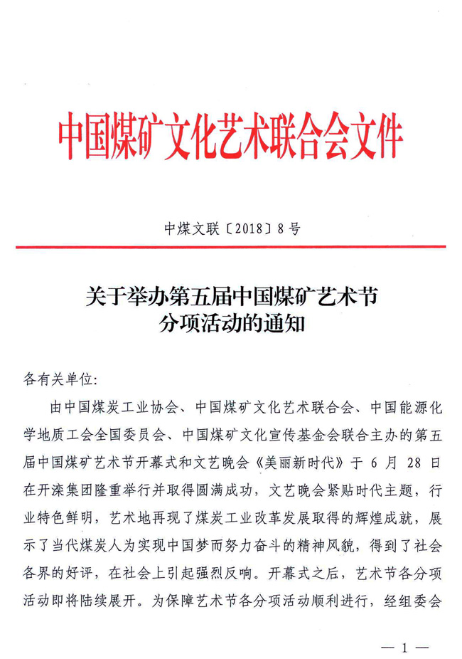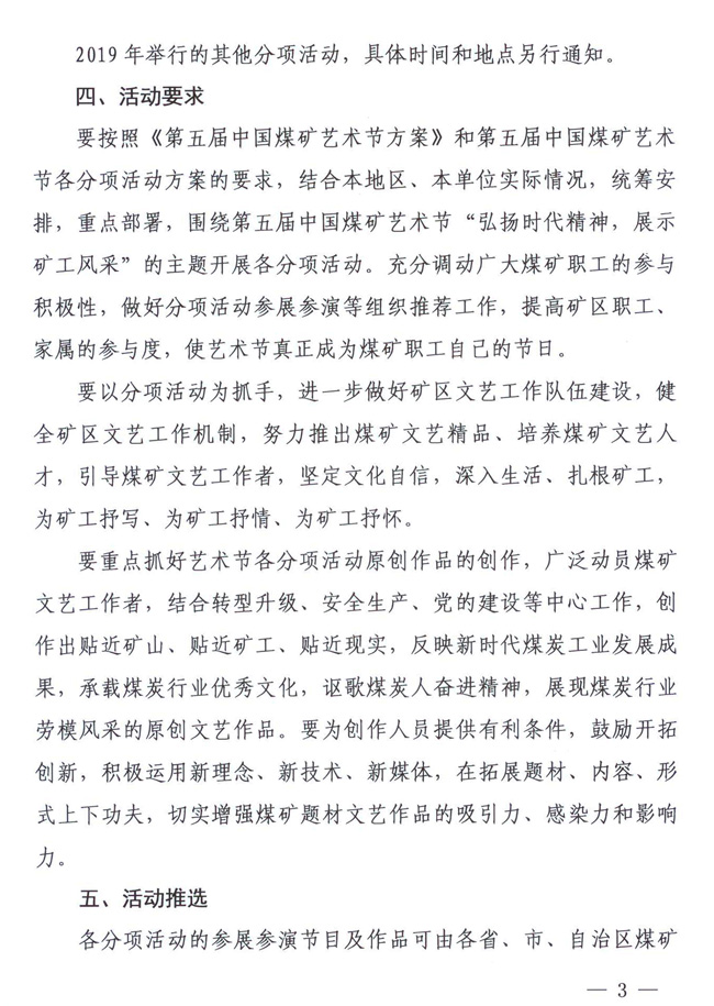 关于举办第五届中国煤矿艺术节分项活动的通知