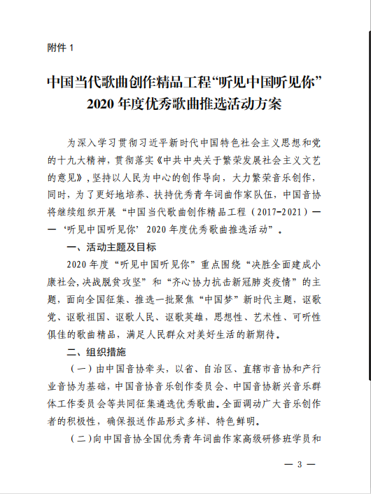 “听见中国听见你”2020年度优秀歌曲推选活动通知
