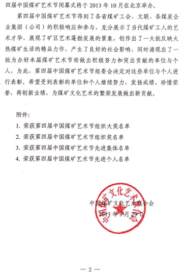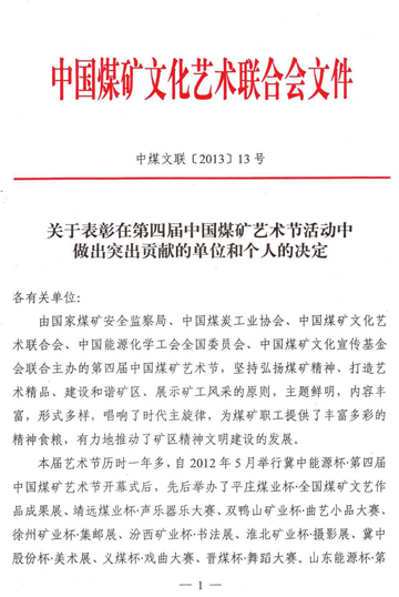 关于表彰在第四届煤矿艺术节活动中做出突出贡献的单位和个人的决定