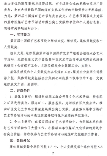 关于表彰在第四届中国煤矿艺术节各项活动中做出突出贡献的单位与个人的通知