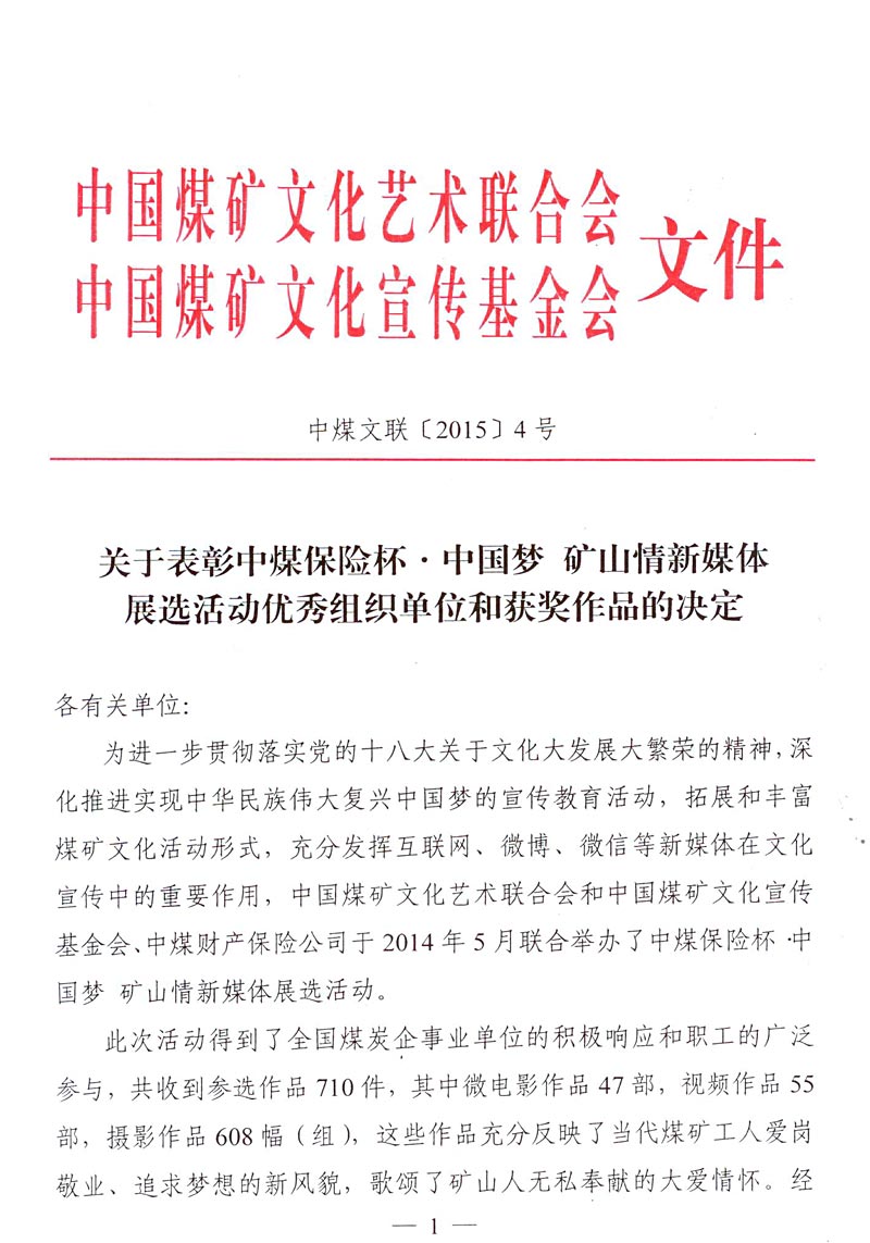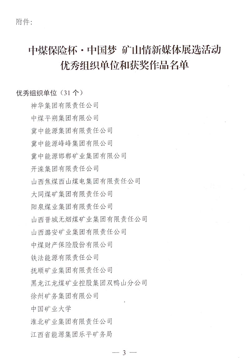 关于表彰中煤保险杯·中国梦 矿山情新媒体展选活动优秀组织单位和获奖作品的决定
