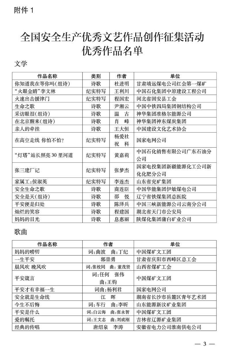 国家安监总局 全国总工会 关于公布全国安全生产优秀文艺作品的通知 来源:中国煤矿文联 作者: 时间:2016-09-13 【字体:小 大】 智能标签: 安全生产优秀文艺作品 相关内容 分享到: 【打印正文】
