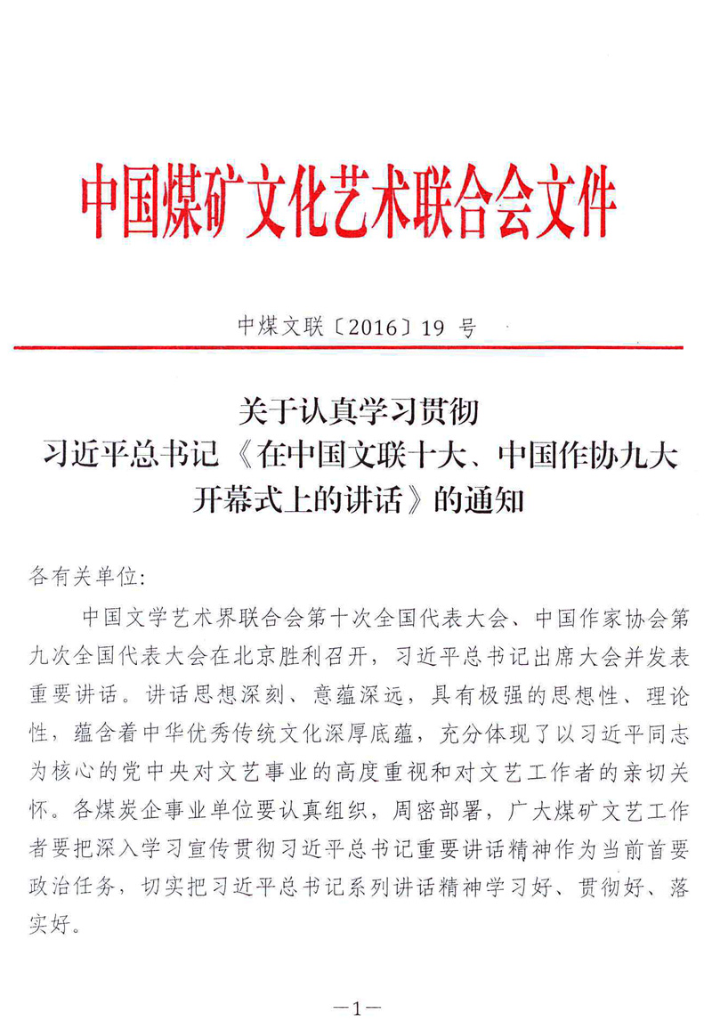 关于认真学习贯彻习近平总书记 《在中国文联十大、中国作协九大开幕式上的讲话》的通知 来源:中国煤矿文联 作者: 时间:2016-12-06 【字体:小 大】 智能标签: 习近平 中国文联 中国作协 相关内容 分享到: 【打印正文】