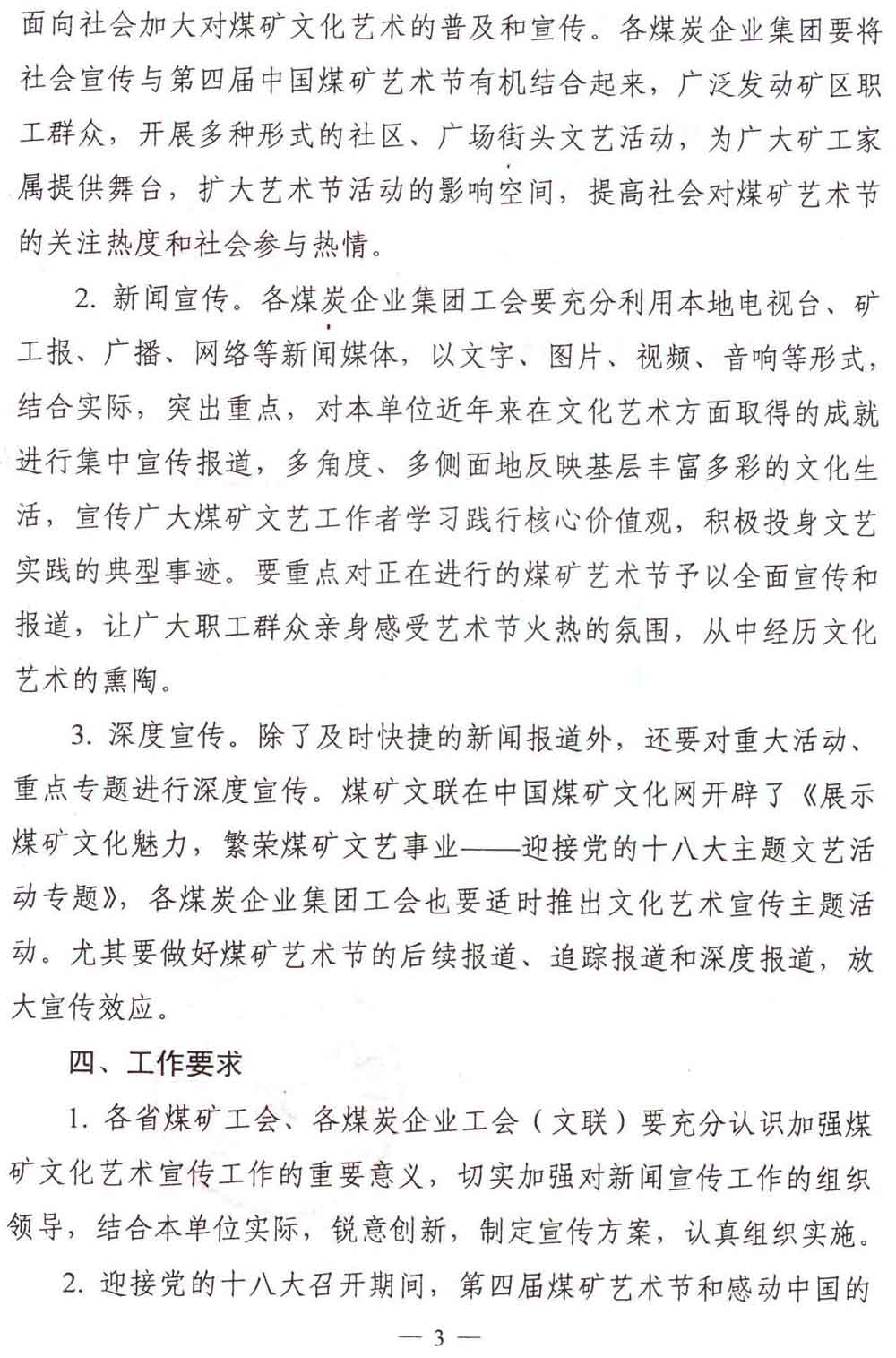 关于加强煤矿文化艺术宣传工作的通知