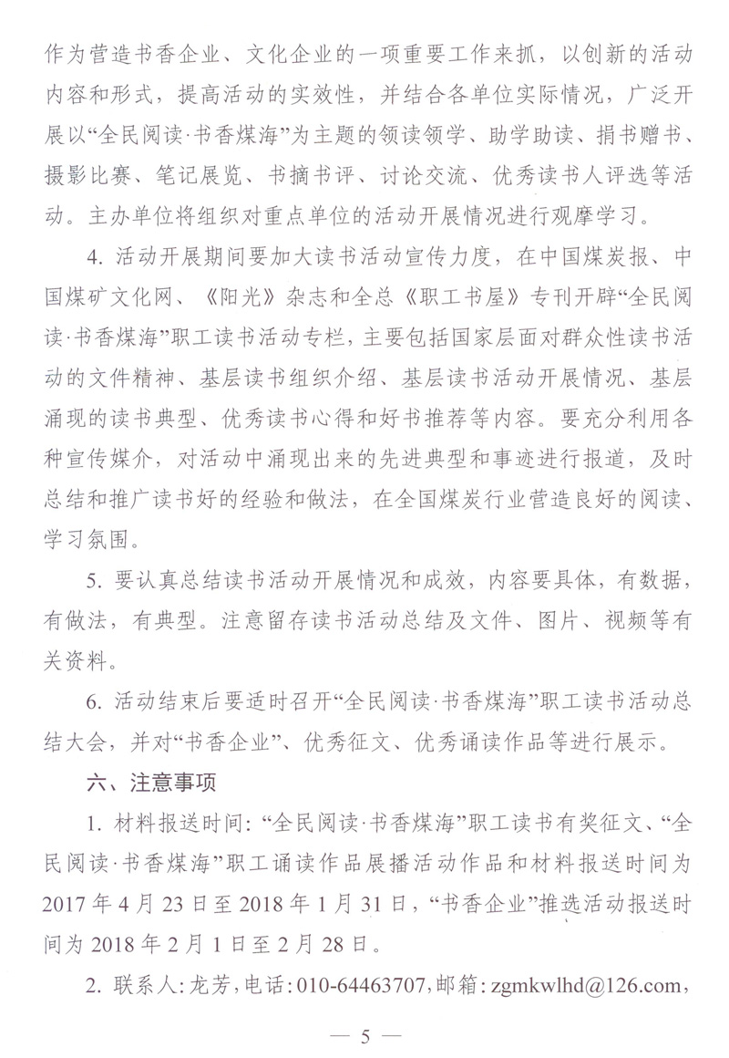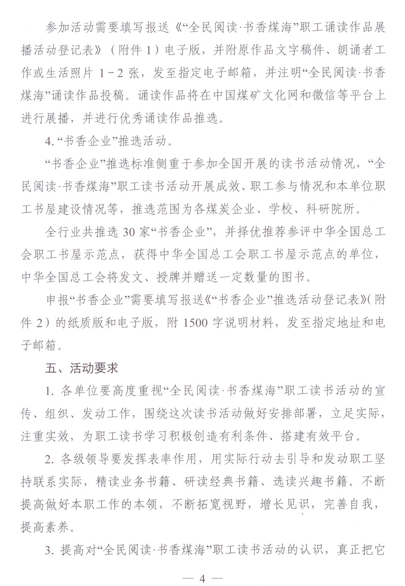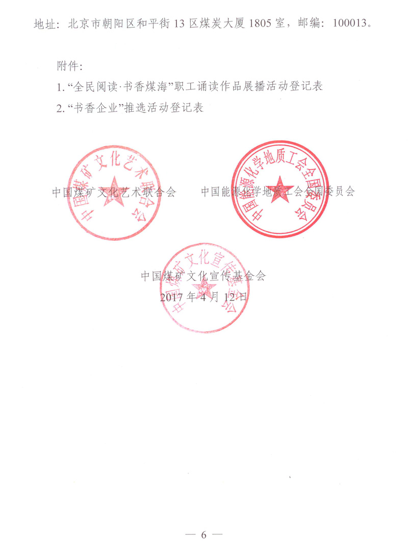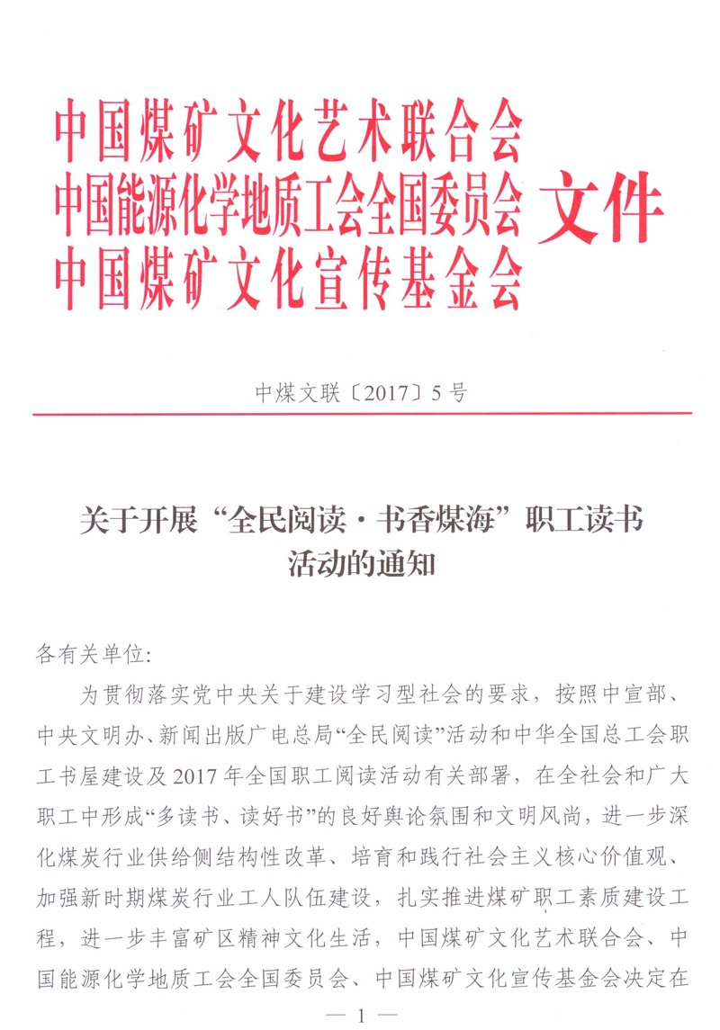 关于开展“全民阅读·书香煤海”职工读书活动的通知 来源:中国煤矿文联 作者: 时间:2017-04-21 【字体:小 大】 附件: 1. “全民阅读·书香煤海”职工诵读作品展播活动登记表 2. “书香企业”推选活动登记表 智能标签: 书香煤海 相关内容 分享到: 【打印正文】