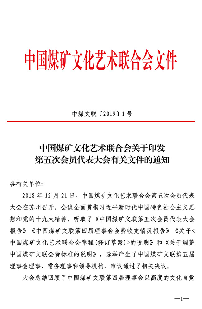 中国煤矿文联关于印发第五次会员代表大会有关文件的通知 来源:中国煤矿文联 作者: 时间:2019-01-18 【字体:小 大】 中国煤矿文化艺术联合会关于印发第五次会员代表大会有关文件的通知(PDF版) 智能标签: 中国煤矿文联 相关内容 分享到: 【打印正文】