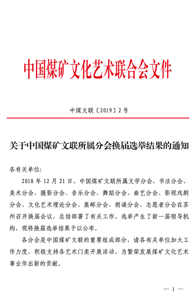 关于中国煤矿文联所属分会换届选举结果的通知 来源:中国煤矿文联 作者: 时间:2019-02-01 【字体:小 大】 关于中国煤矿文联所属分会换届选举结果的通知(PDF版) 智能标签: 中国煤矿文联 相关内容 分享到: 【打印正文】