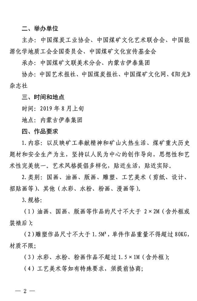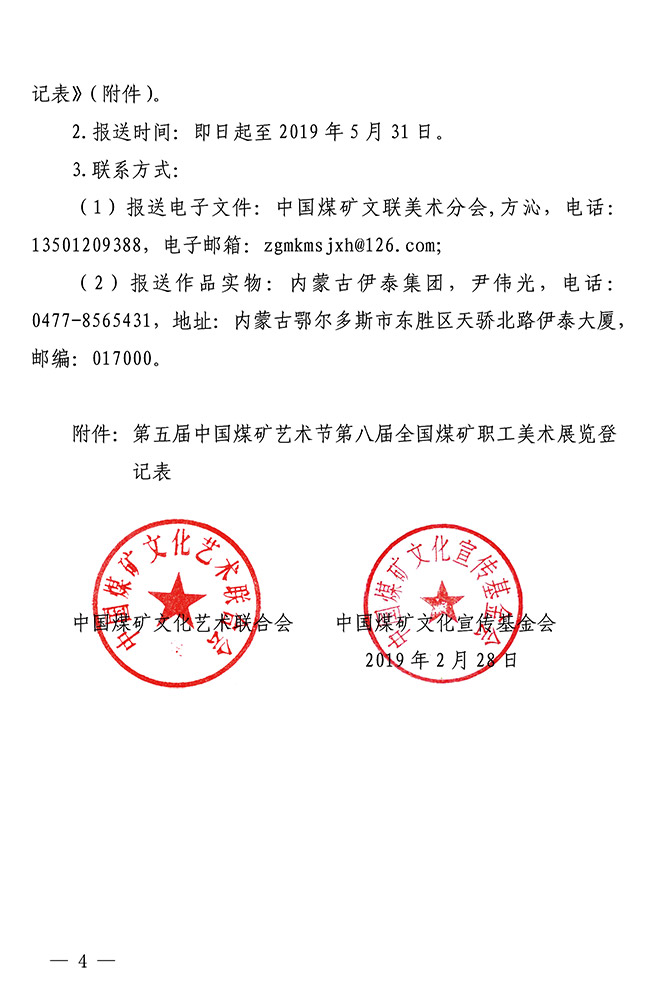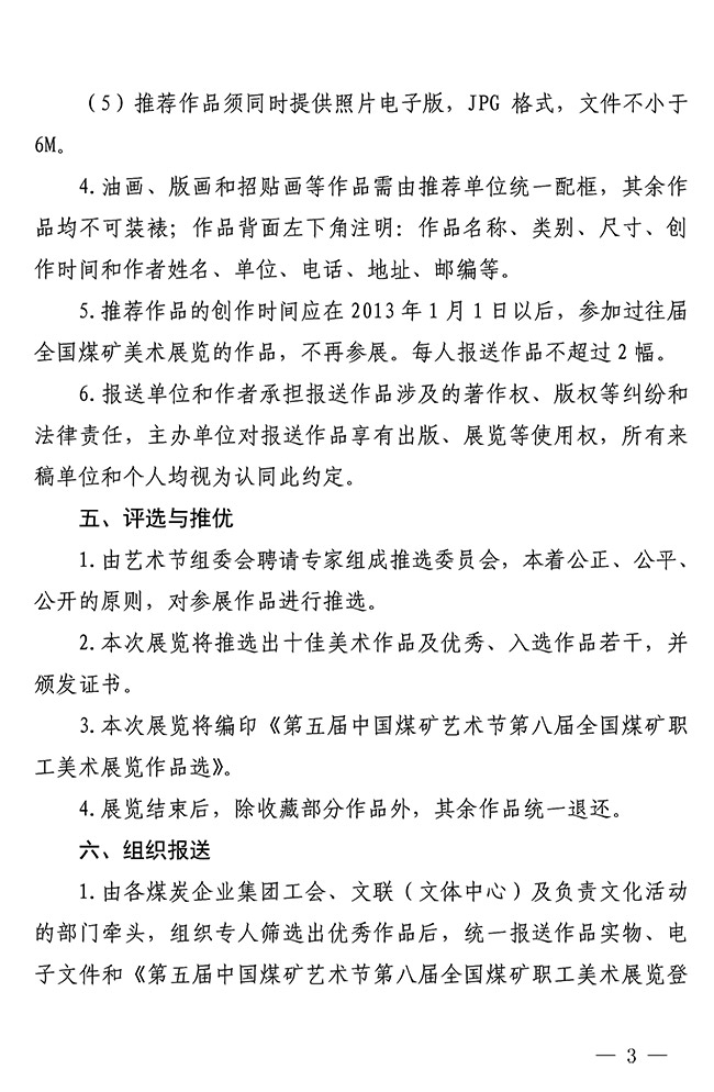 关于举办第八届全国煤矿职工美术展览的通知 来源:中国煤矿文联 作者: 时间:2019-03-11 【字体:小 大】 关于举办第五届中国煤矿艺术节第八届全国煤矿职工美术展览的通知(PDF版)附件:第五届中国煤矿艺术节第八届全国煤矿职工美术展览登记表 智能标签: 中国煤矿艺术节 相关内容 分享到: 【打印正文】