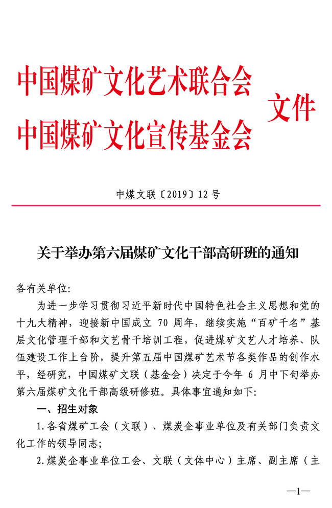 关于举办第六届煤矿文化干部高研班的通知 来源:中国煤矿文联 作者: 时间:2019-05-20 【字体:小 大】 附件:关于举办第六届煤矿文化干部高研班的通知(PDF版)第六届煤矿文化干部高研班报名表 智能标签: 中国煤矿文联 相关内容 分享到: 【打印正文】