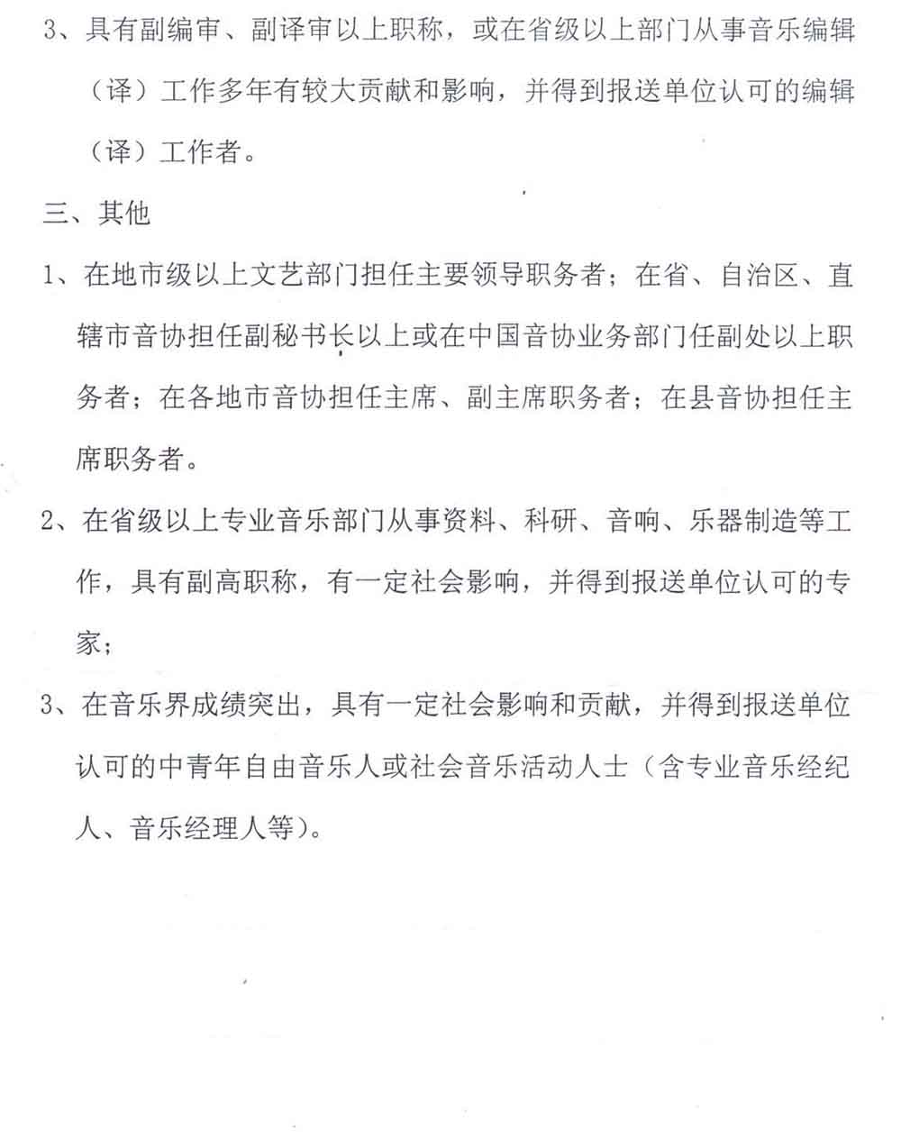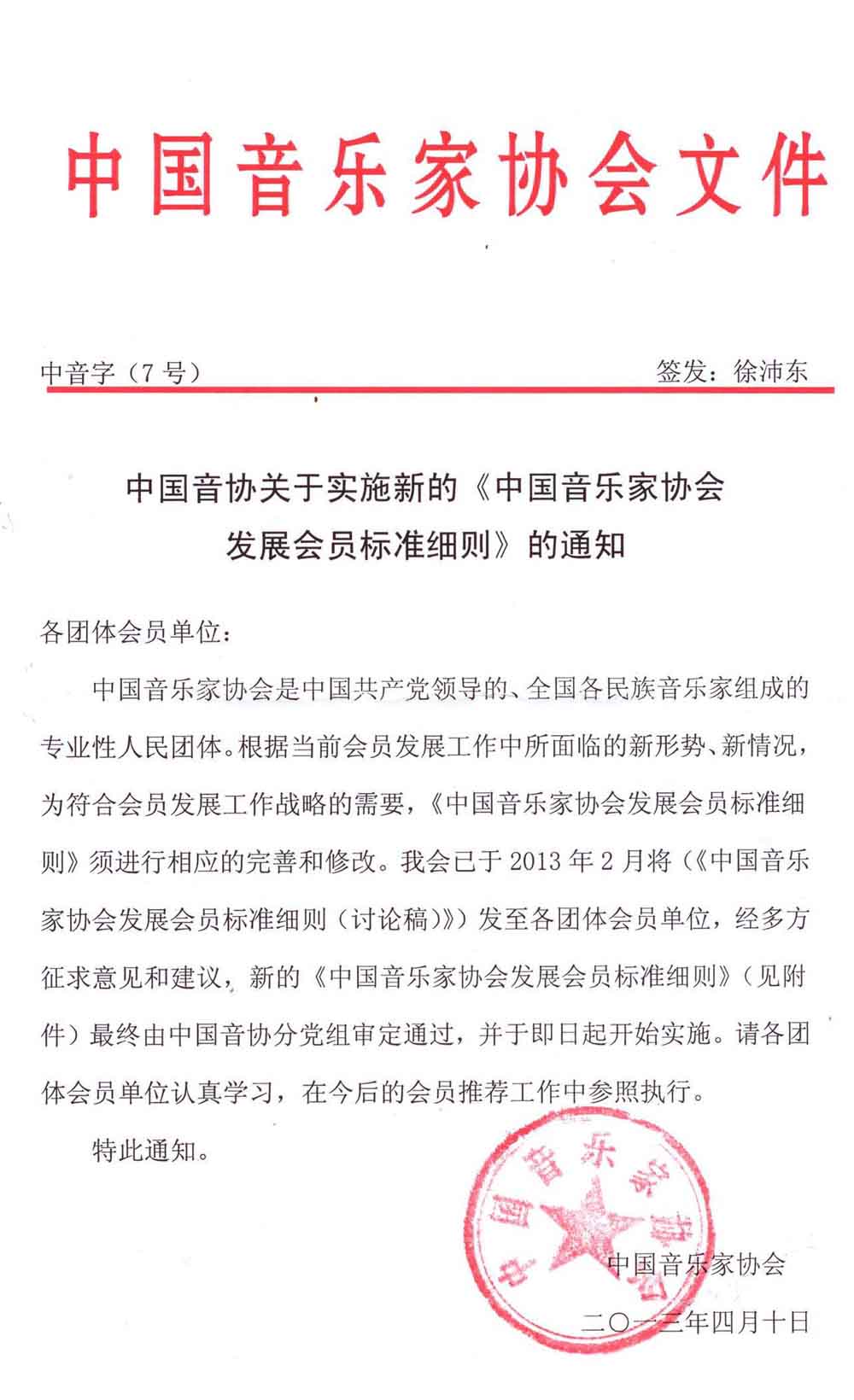 中国音协关于实施新的《中国音乐家协会发展会员标准细则》的通知