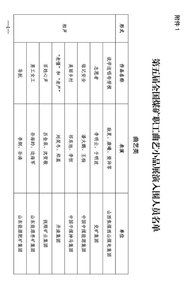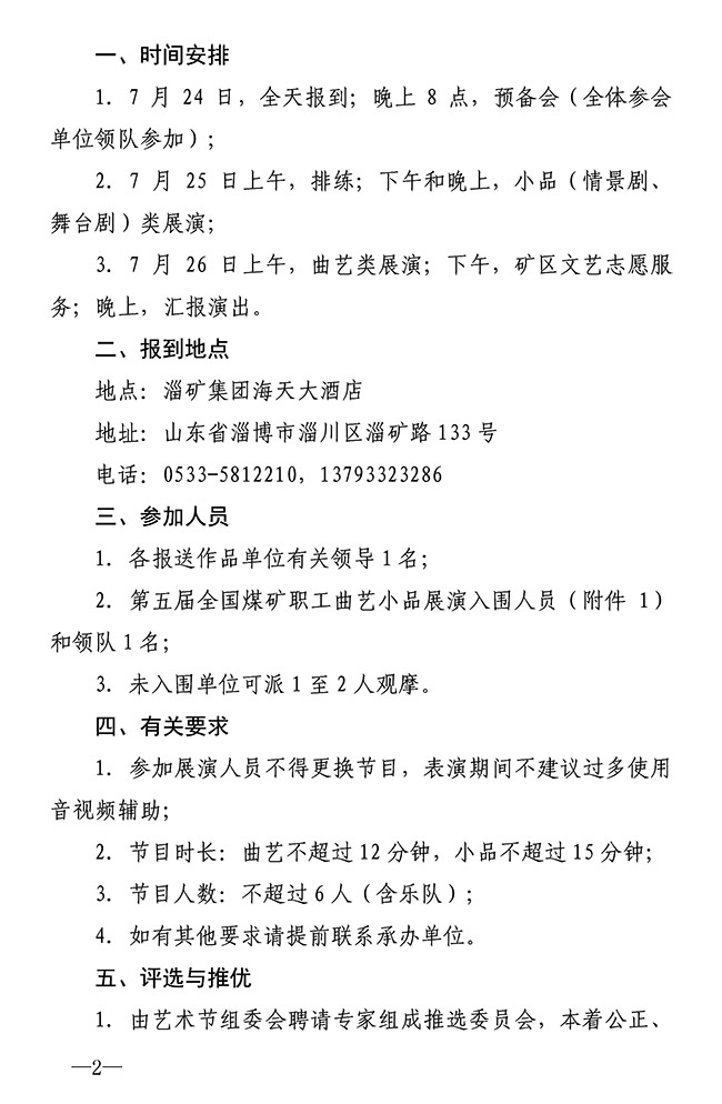 关于参加第五届全国煤矿职工曲艺小品展演及汇报演出的通知 来源:中国煤矿文联 作者: 时间:2019-07-10 【字体:小 大】 附件:• 关于参加“庆祝新中国成立70周年”第五届中国煤矿艺术节“山东能源杯”第五届全国煤矿职工曲艺小品展演及汇报演出的通知(PDF版,含附件1)• 参加展演人员回执表(附件2) 智能标签: 中国煤矿文联 相关内容 分享到: 【打印正文】