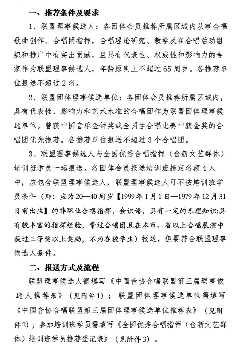 关于推荐中国音协合唱联盟第三届理事候选人、团体理事候选单位的通知