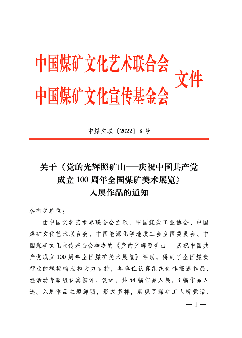 关于《党的光辉照矿山——庆祝中国共产党成立100周年全国煤矿美术展览》入展作品的通知