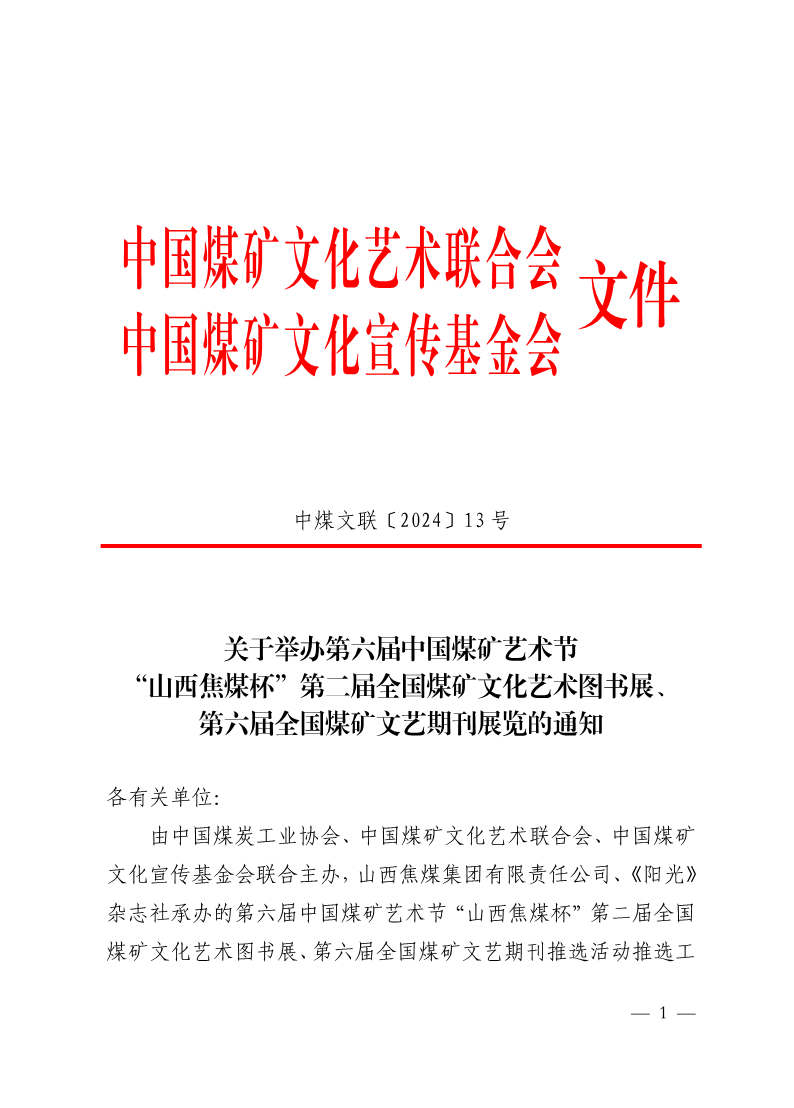 关于举办第六届中国煤矿艺术节“山西焦煤杯”第二届全国煤矿文化艺术图书展、第六届全国煤矿文艺期刊展览的通知