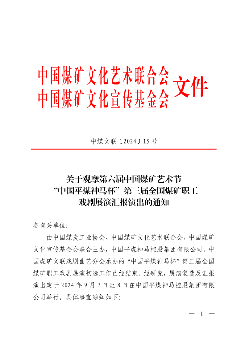 关于观摩第六届中国煤矿艺术节“中国平煤神马杯”第三届全国煤矿职工戏剧展演汇报演出的通知 来源:中国煤矿文联 作者: 时间:2024-08-26 【字体:小 大】 扫码或点击在线填写展演观摩人员回执表 分享到: 【打印正文】