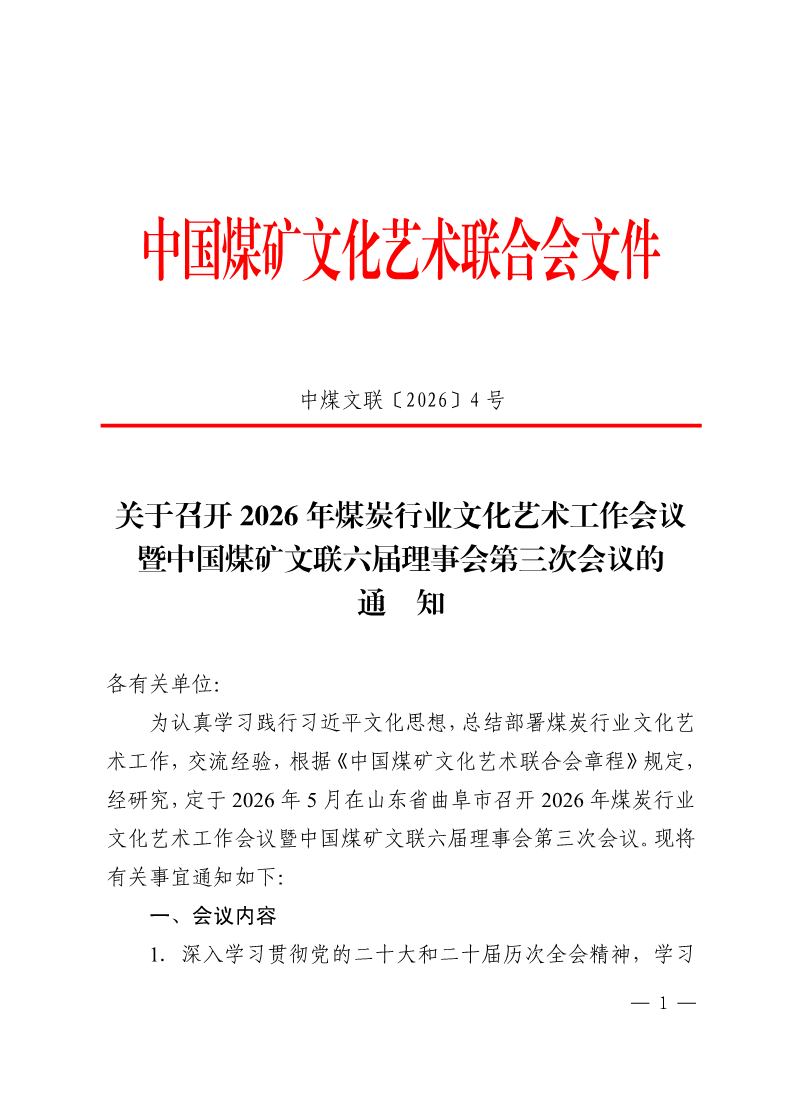 关于召开2026年煤炭行业文化艺术工作会议暨中国煤矿文联六届理事会第三次会议的通知 来源:中国煤矿文联 作者: 时间:2026-04-17 【字体:小 大】 ▲扫码或点击在线填报参会回执表 分享到: 【打印正文】