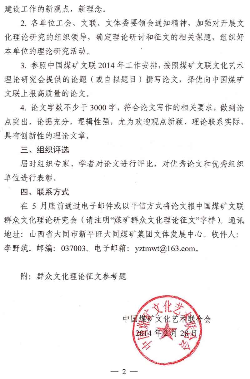 关于开展煤矿群众文化理论征文活动的通知
