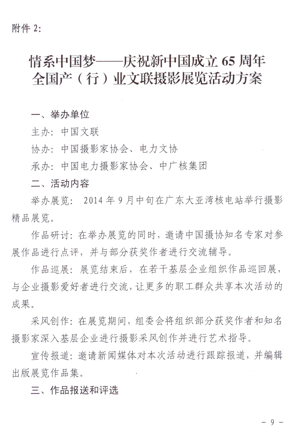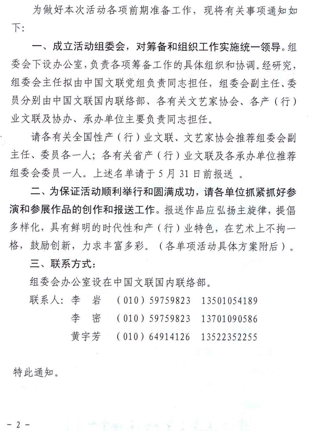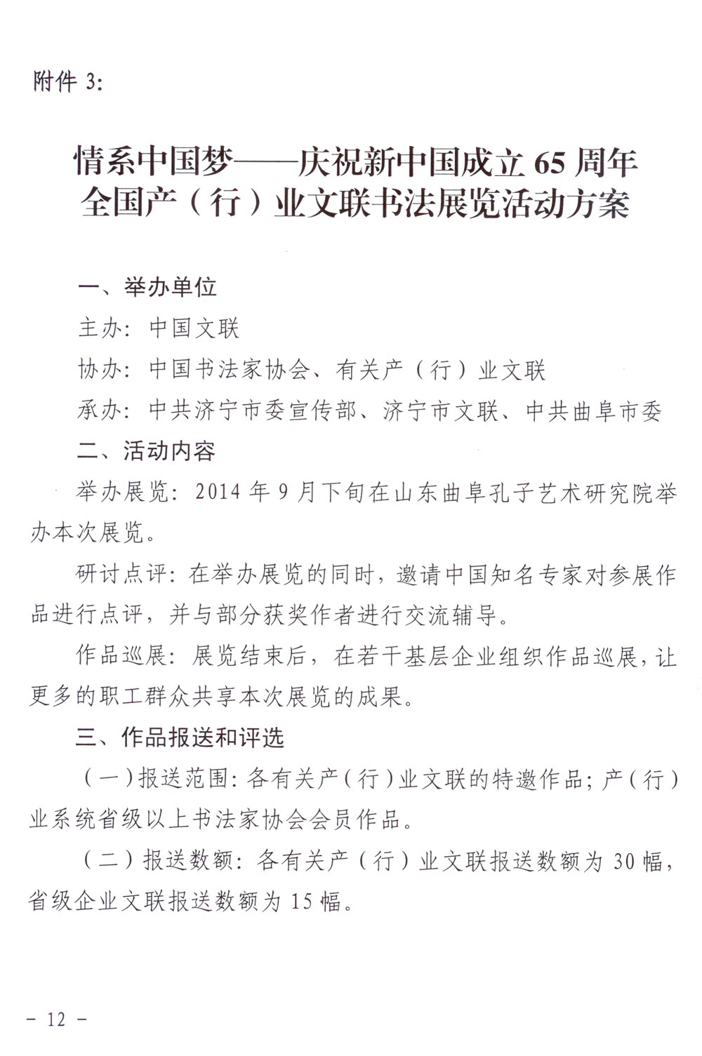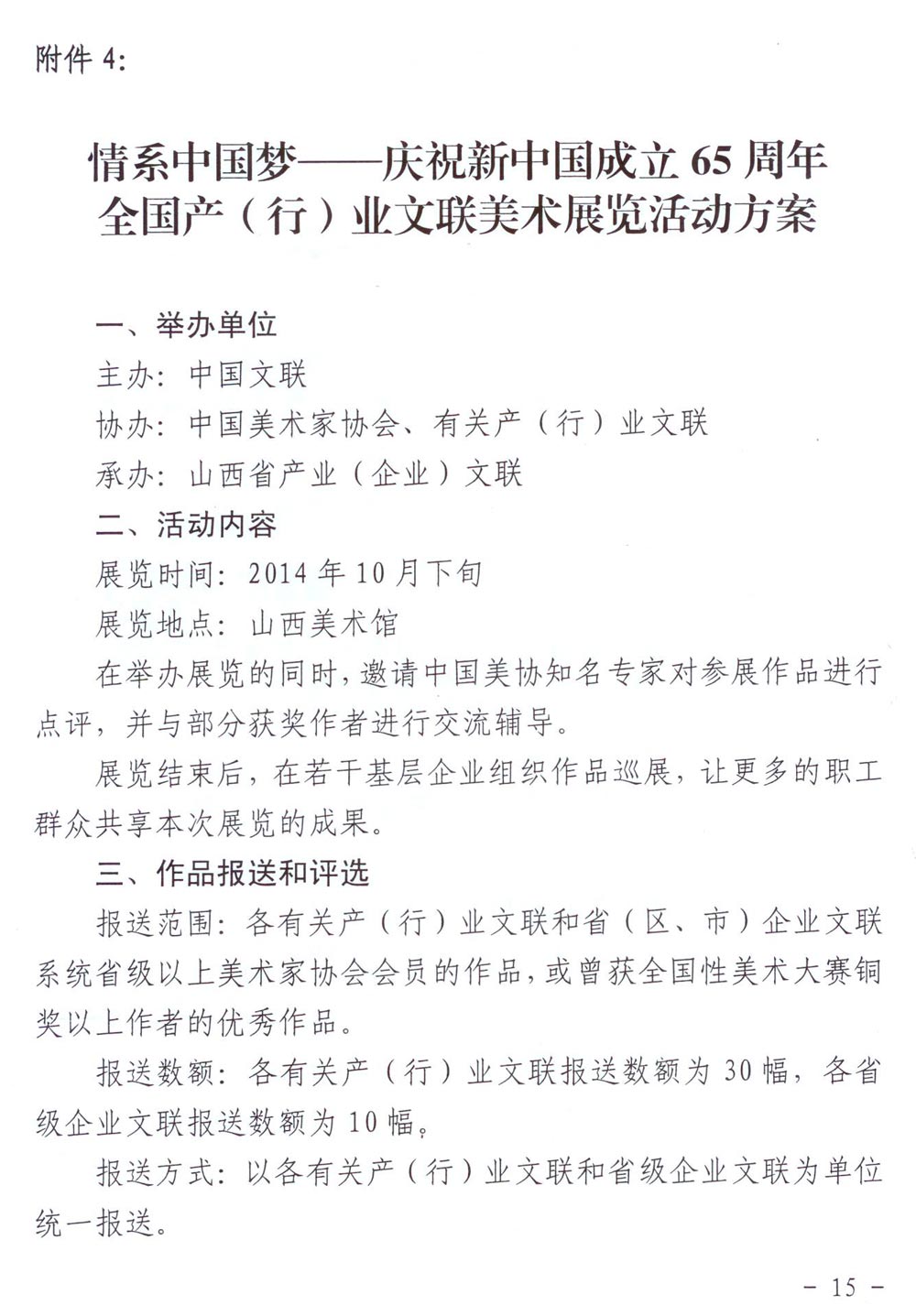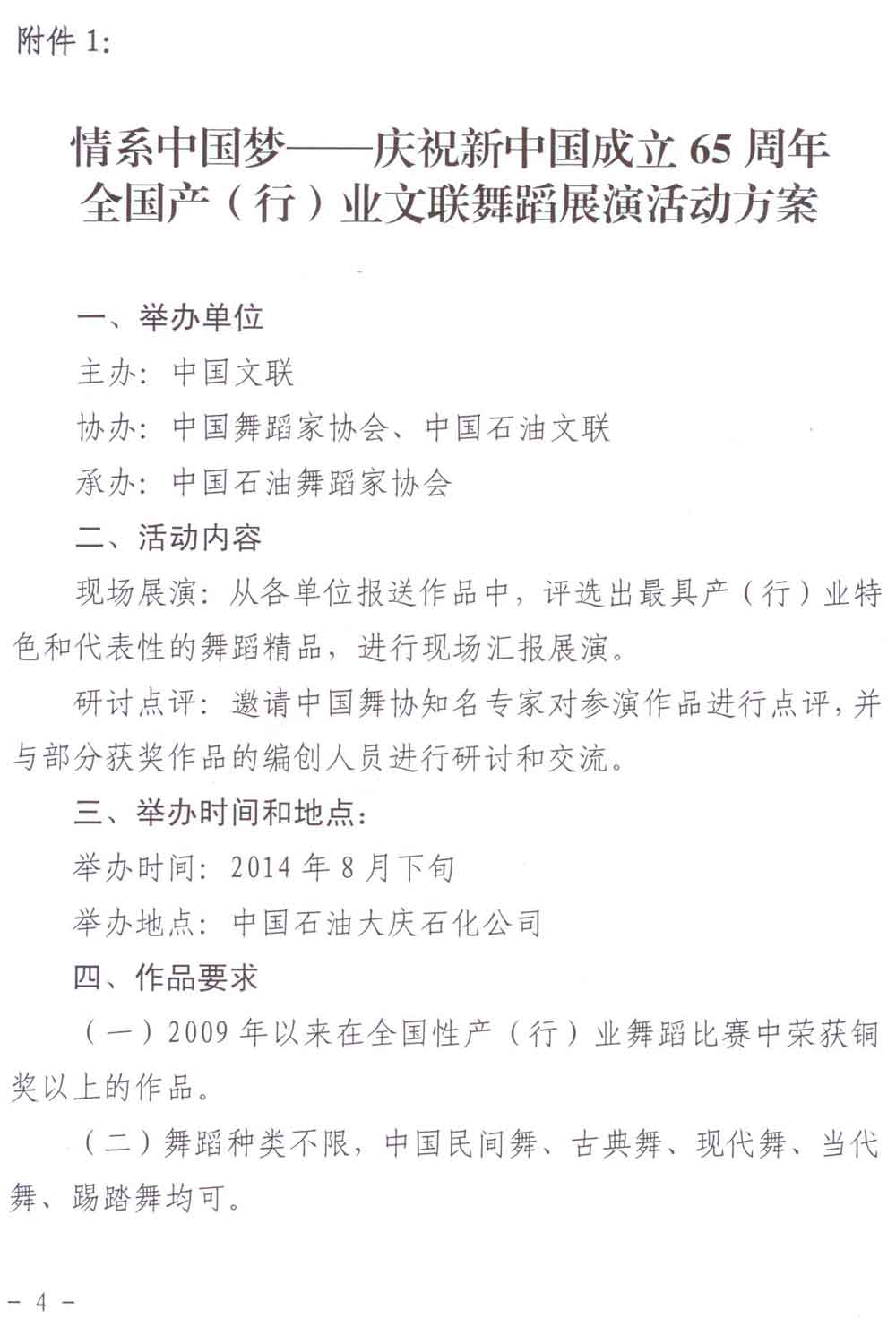 中国文联《关于举办“情系中国梦——庆祝新中国成立65周年系列展演活动”的通知》