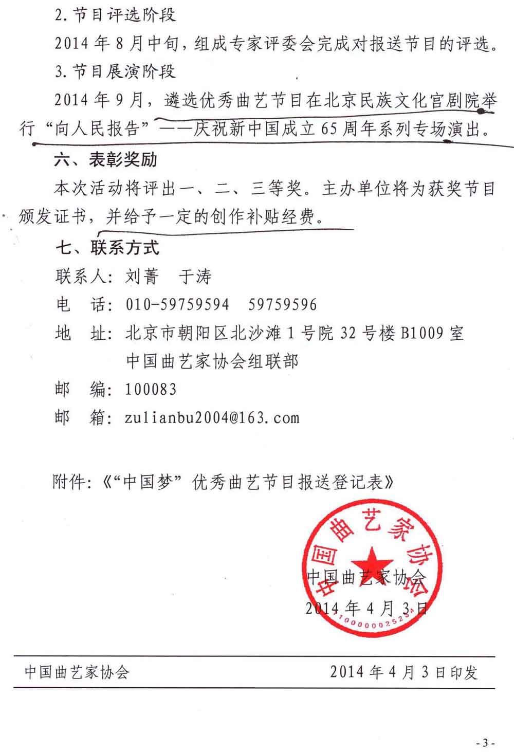 中国曲协《关于开展“中国梦”全国优秀曲艺节目推选展演活动的通知》