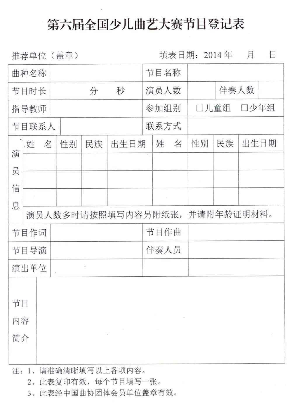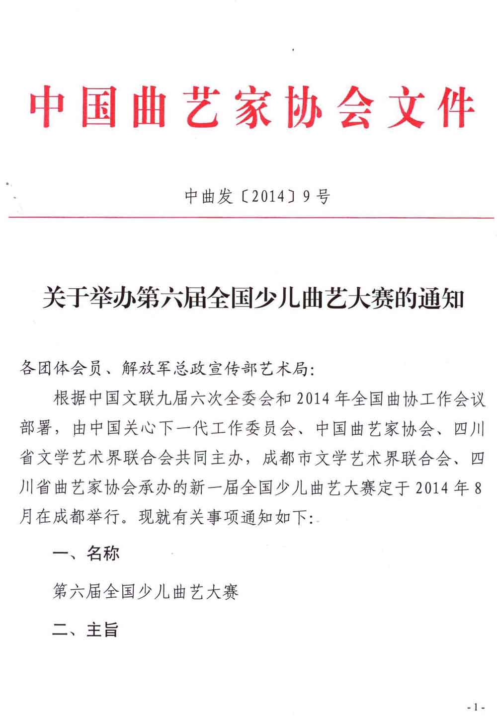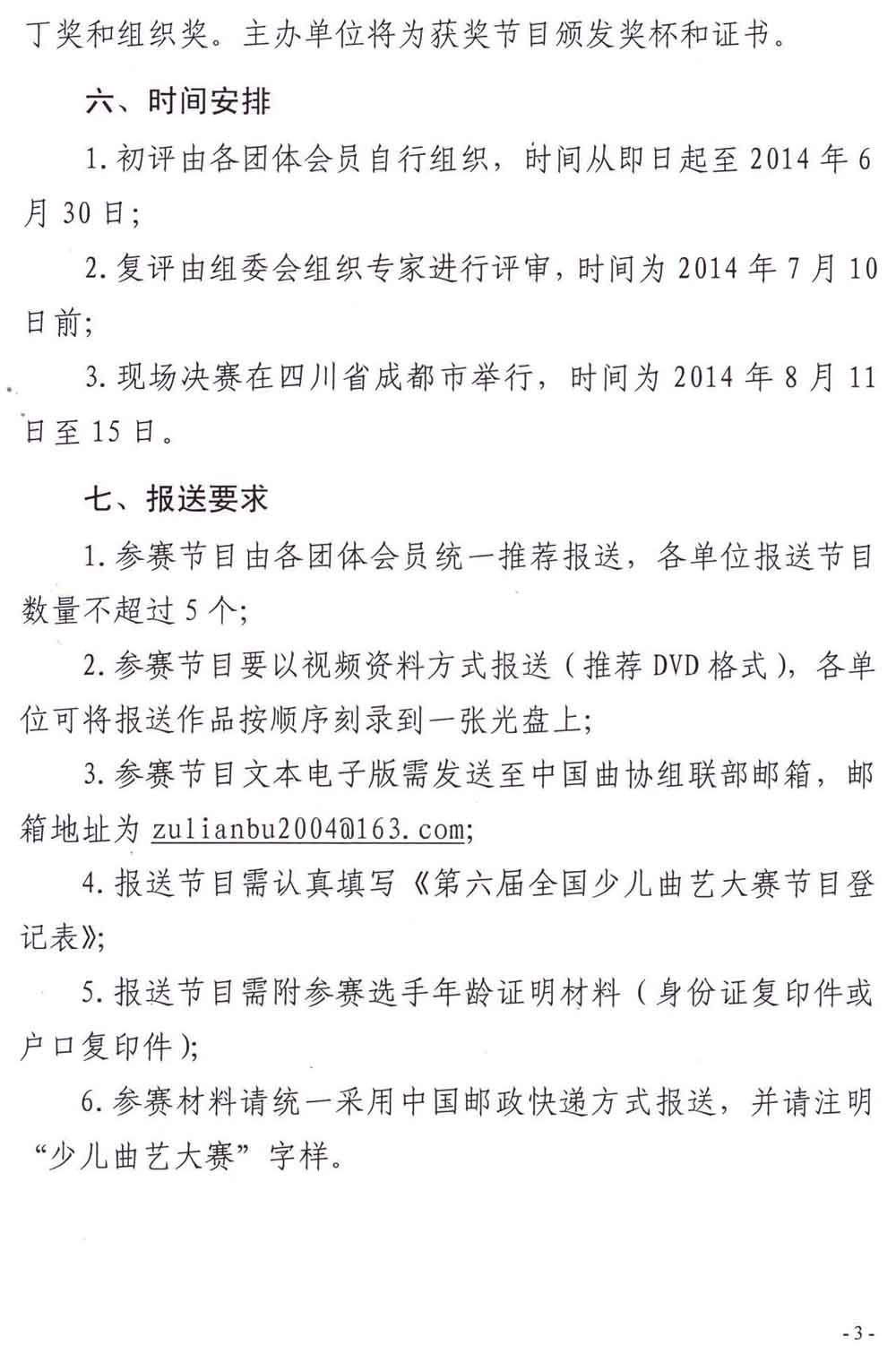中国曲协《关于举办第六届全国少儿曲艺大赛的通知》