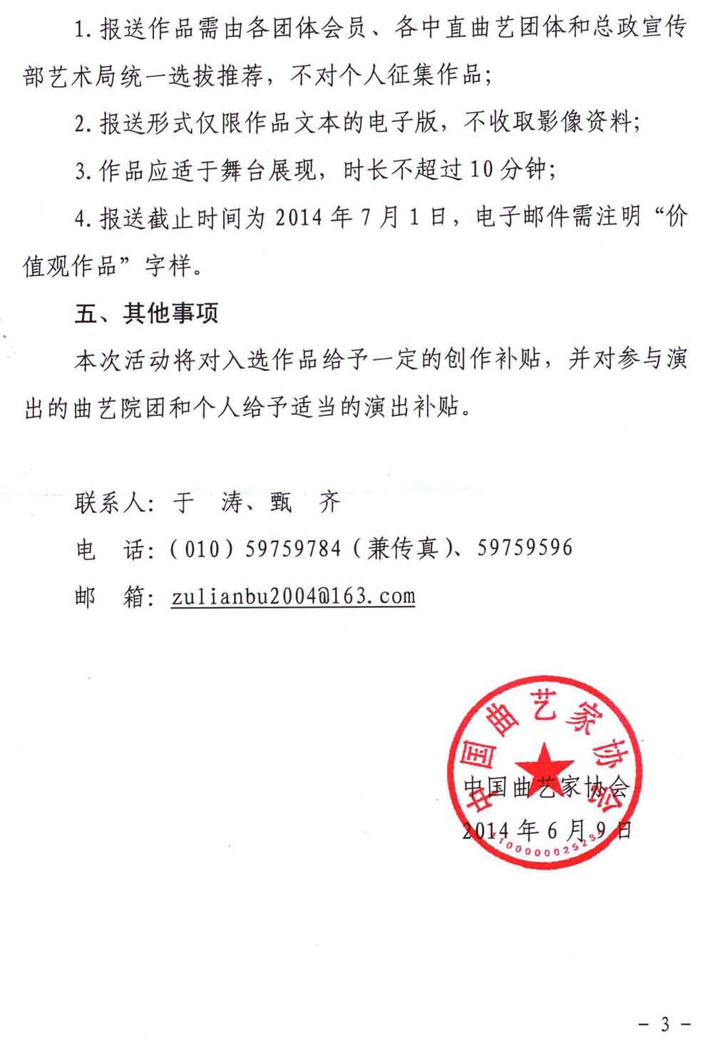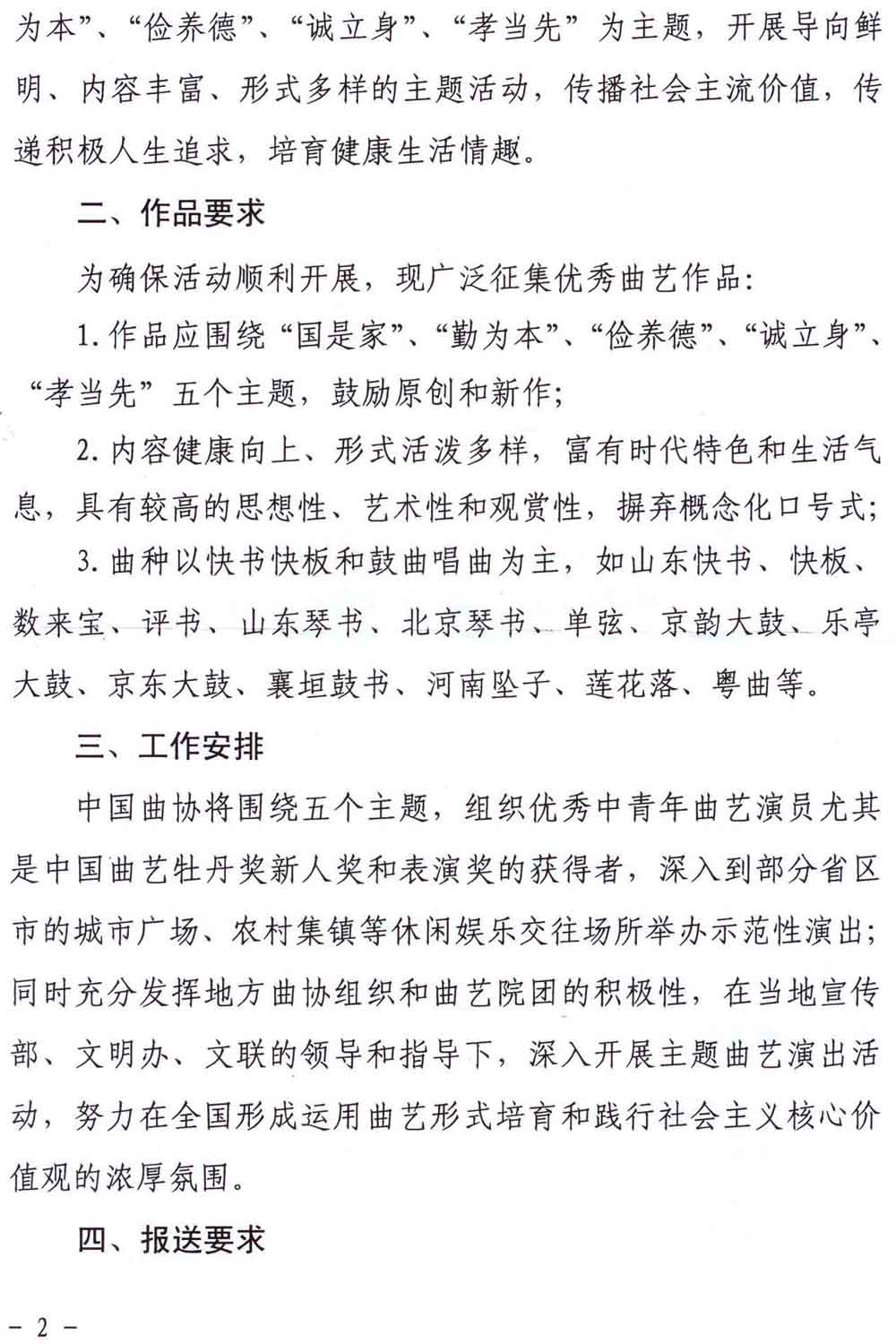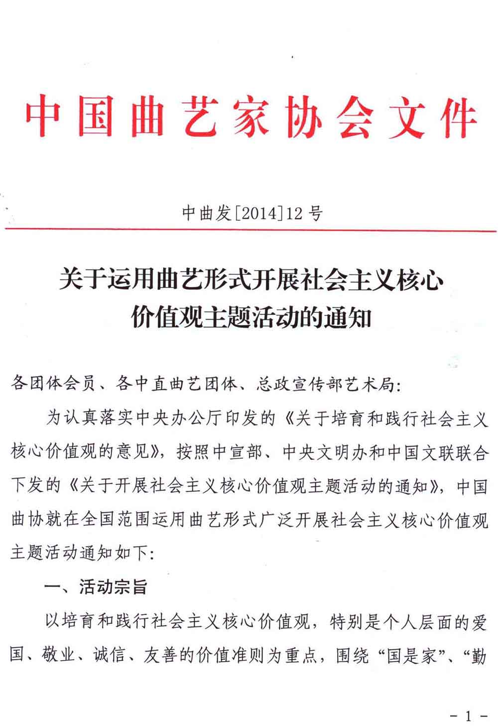 中国曲协《关于运用曲艺形式开展社会主义核心价值观主题活动的通知》