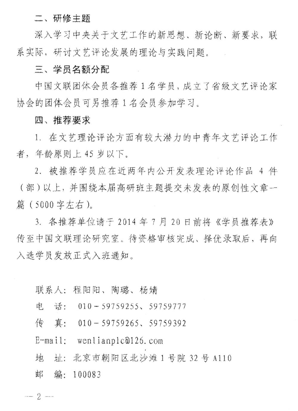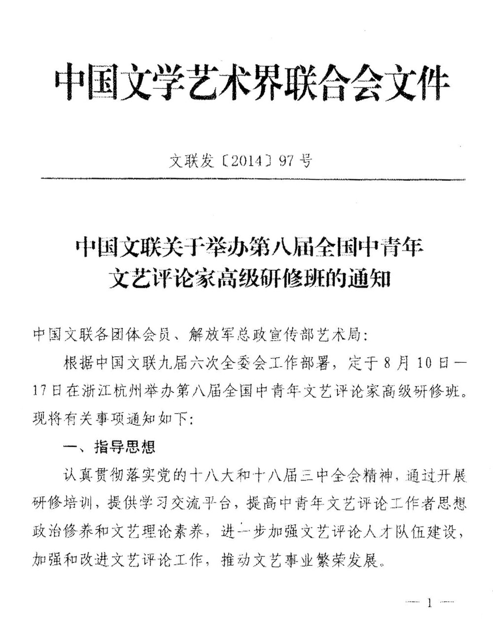 中国文联《关于举办第八届全国中青年文艺评论家高级研修班的通知》