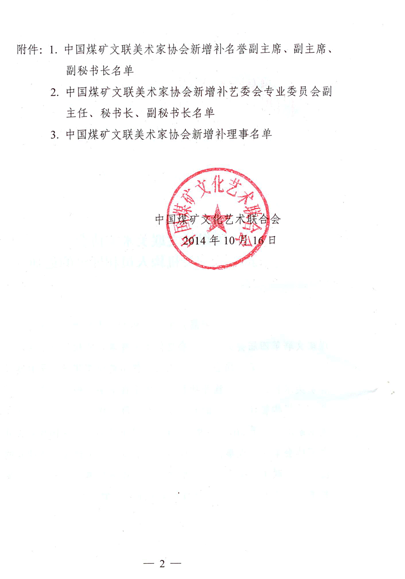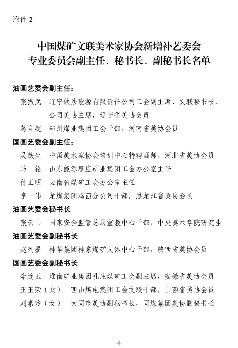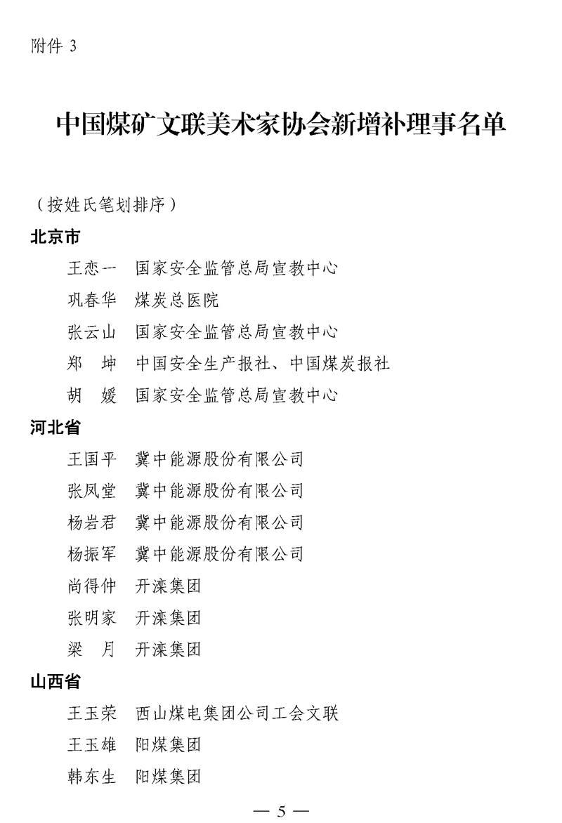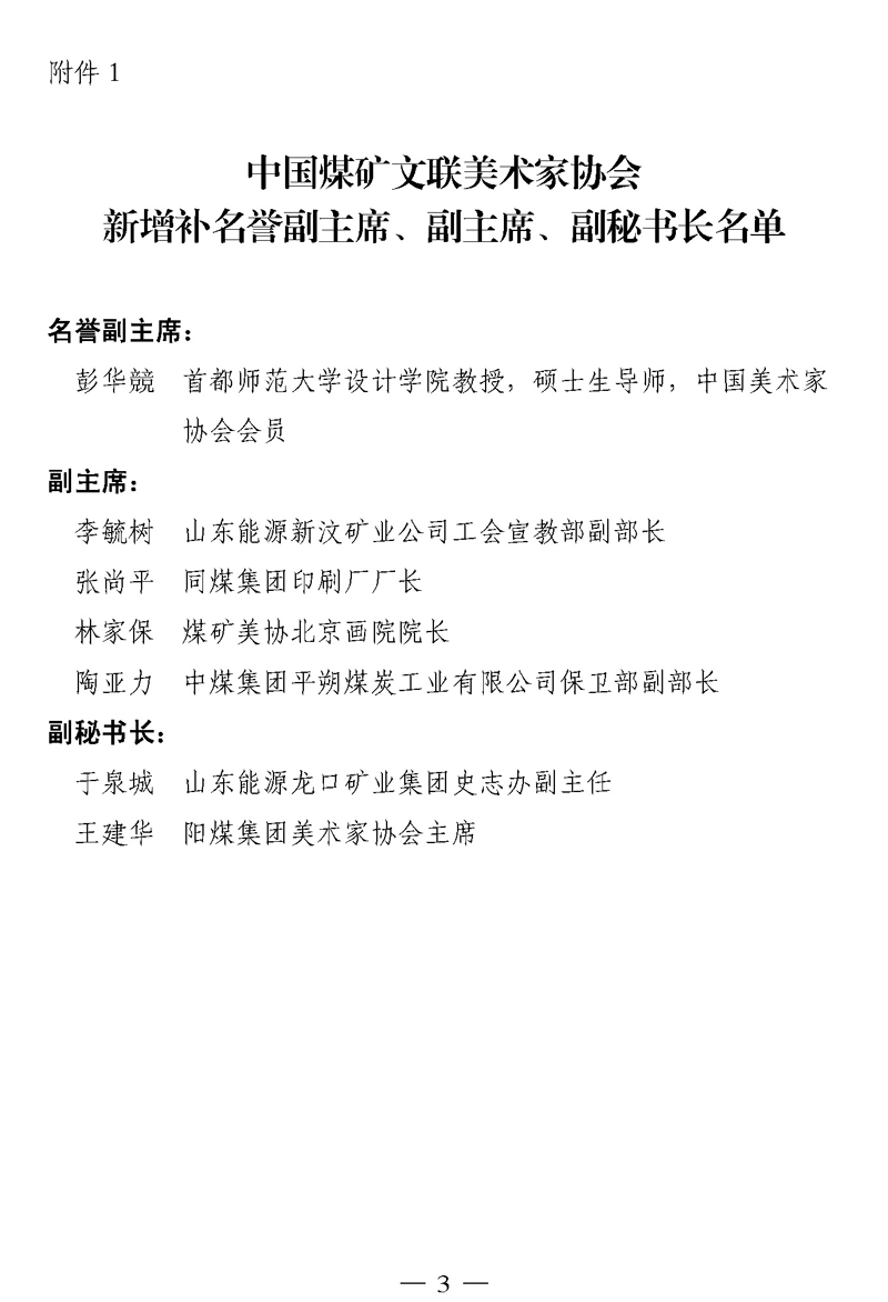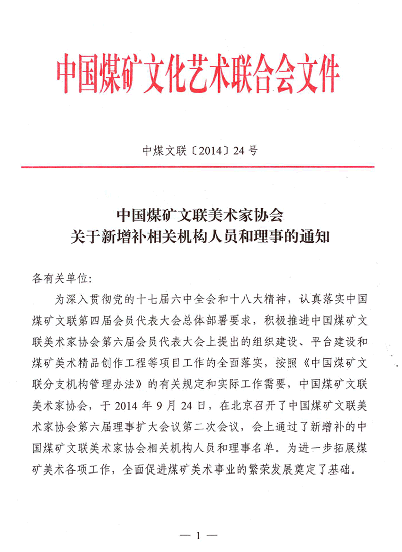 中国煤矿文联美术家协会关于新增补相关机构人员和理事的通知