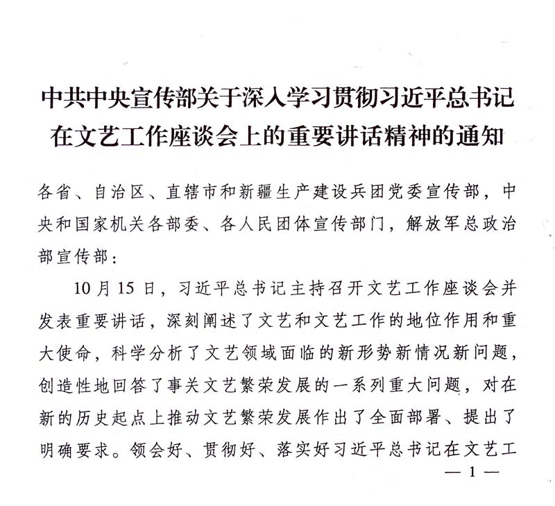 中宣部关于深入学习贯彻习近平总书记在文艺工作座谈会上的重要讲话精神的通知 来源: 作者: 时间:2014-12-18 【字体:小 大】 智能标签: 中宣部 习近平 文艺工作座谈会 相关内容 分享到: 【打印正文】