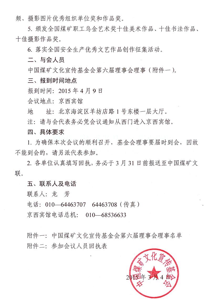 关于召开中国煤矿文化宣传基金会第六届理事会第五次会议的通知 来源: 作者: 时间:2015-03-19 【字体:小 大】 附件一:中国煤矿文化宣传基金会第六届理事会理事名单 附件二:参加会议人员回执表 智能标签: 中国煤矿文化宣传基金会 理事会 相关内容 分享到: 【打印正文】