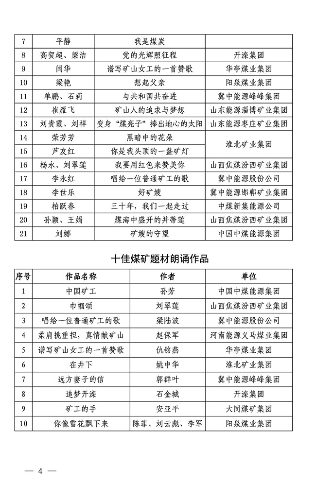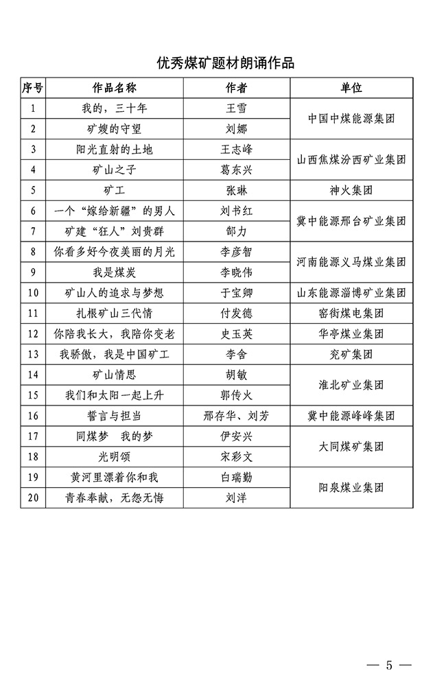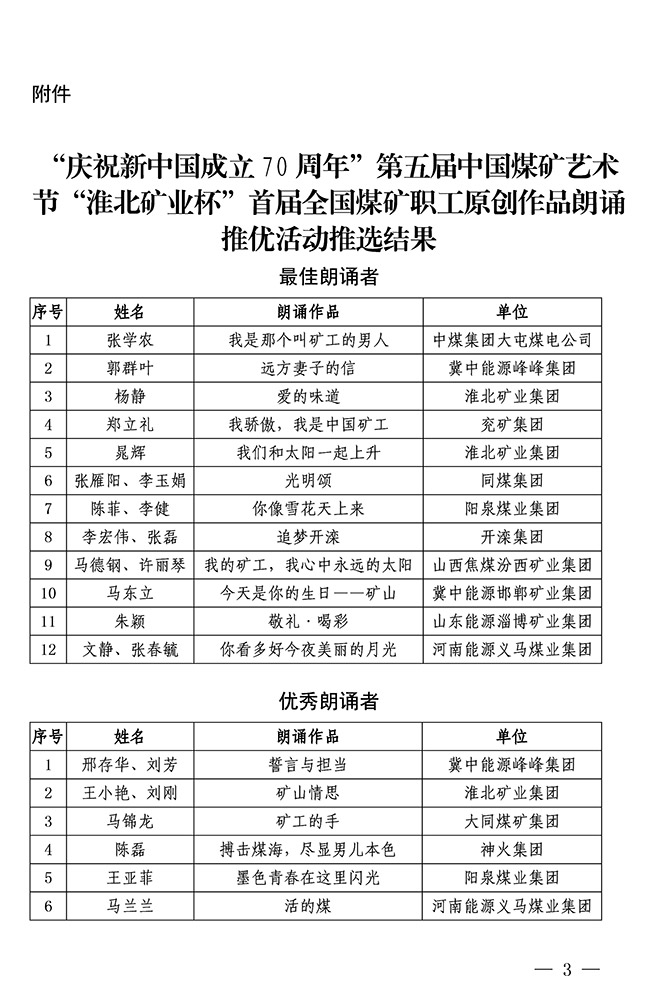 关于“庆祝新中国成立70周年”第五届中国煤矿艺术节“淮北矿业杯”首届全国煤矿职工原创作品朗诵推优活动推选结果的通知 来源:中国煤矿文联 作者: 时间:2019-11-18 【字体:小 大】 关于“庆祝新中国成立70周年”第五届中国煤矿艺术节“淮北矿业杯”首届全国煤矿职工原创作品朗诵推优活动推选结果的通知(PDF版) 智能标签: 中国煤矿文联 中国煤矿艺术节 相关内容 分享到: 【打印正文】