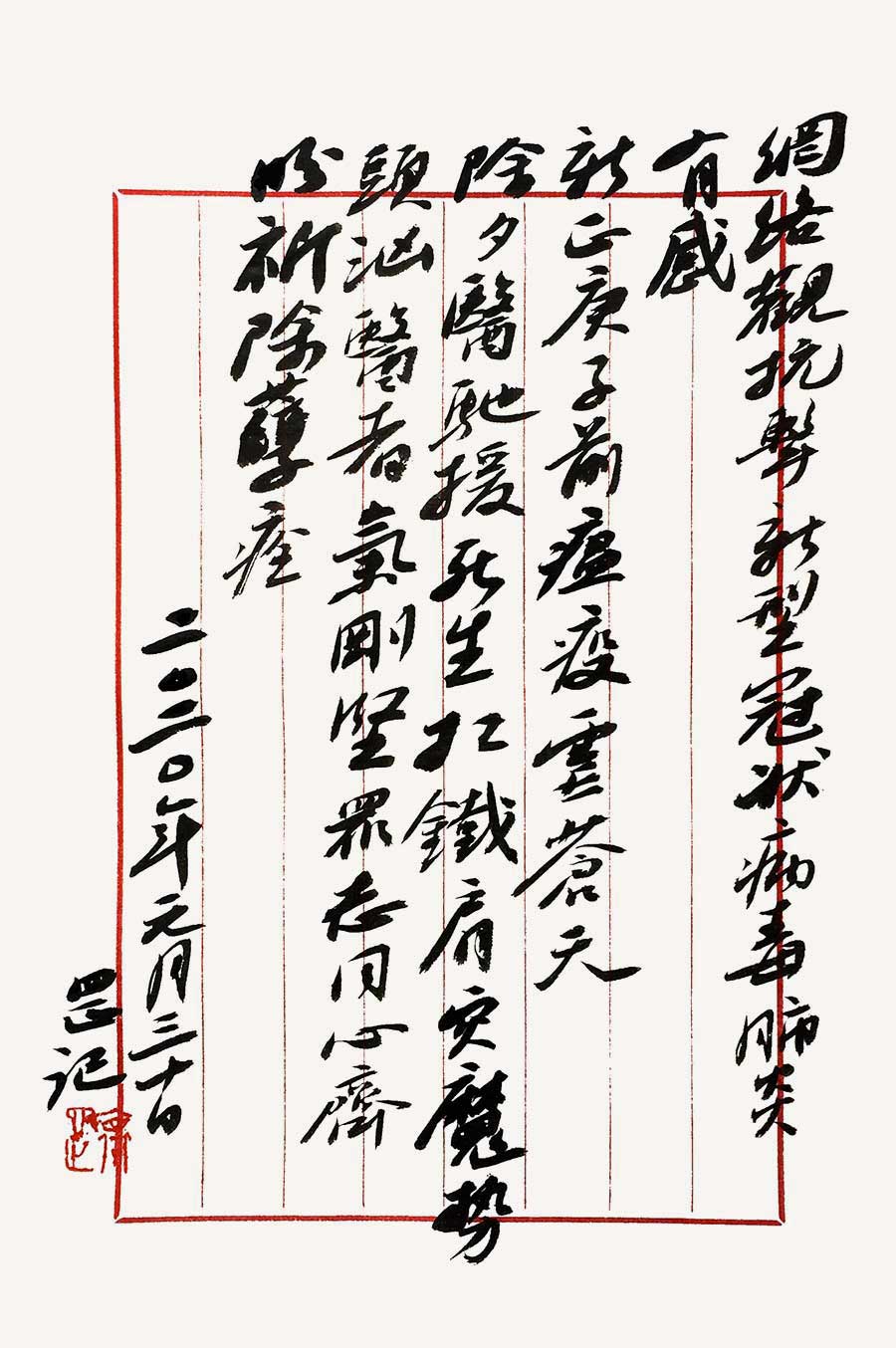 本次“生命重于泰山——中国煤矿书法家声援武汉、抗击疫情网络书法展”就是从这些作品中遴选出来的佳作精品,以此献给所有奋战在抗击新型冠状病毒感染的肺炎疫情第一线的勇士们。最伟大的力量,莫过于人心的力量,让我们一同团结起来,打赢这场疫情防控的硬仗。