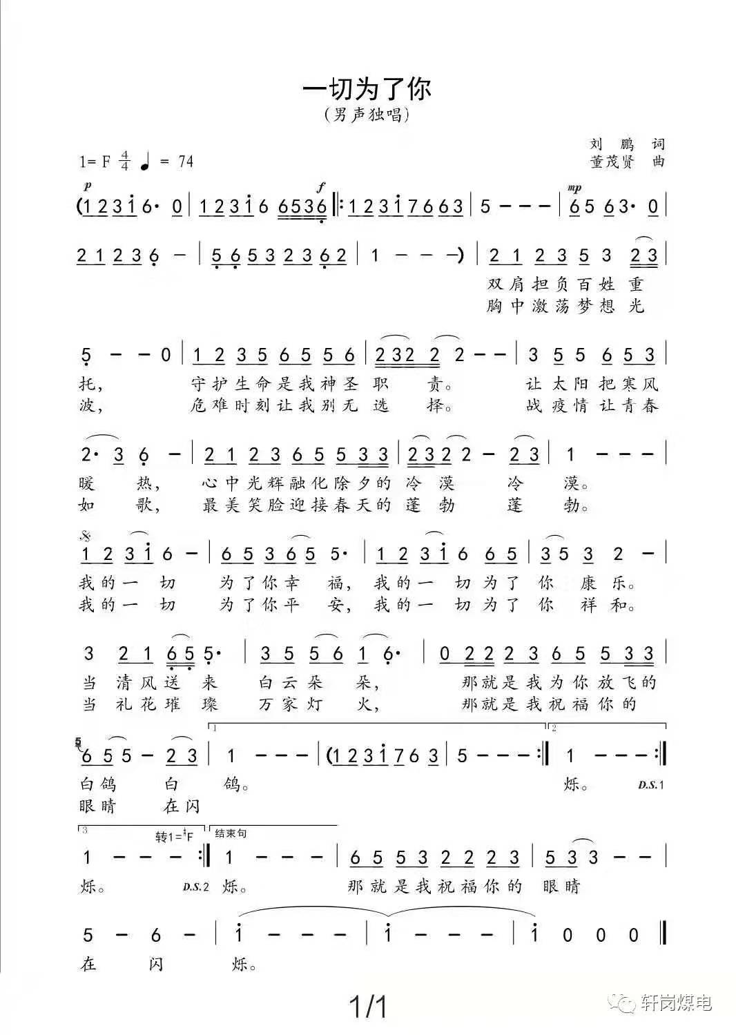 词:董帅 曲:康亮 演唱:董帅、温杰 报送单位:开滦集团