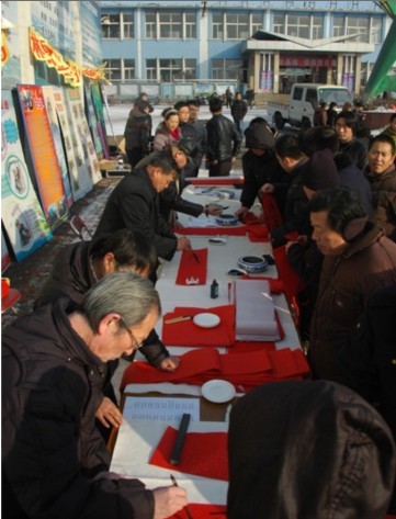 艺术为矿工服务,开滦艺术团春节前后,分别深入到唐山矿、兴隆公司等基层单位进行两会和安全宣传演出的同时,开滦书画院的矿山书法家们,也用送春联的形式把新春的问候带给每一位矿工。3天时间里,他们顶风冒雪,连续到赵各庄矿、林西矿、唐山矿、荆各庄矿等基层单位,在井口旁,在灯房里,挥毫泼墨,把浓浓地祝福送给广大员工和家属。
