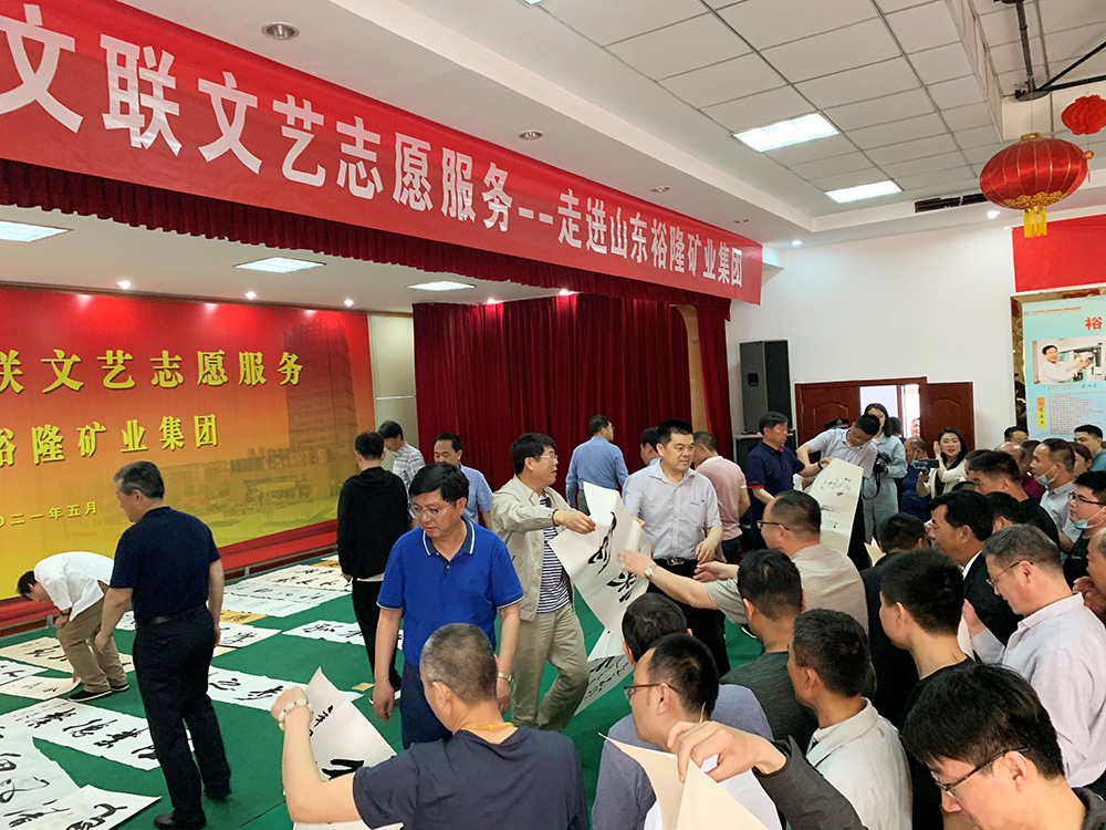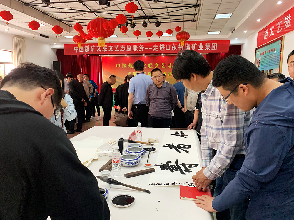 5月14日,在第八个“中国文艺志愿者服务日”即将到来之际,中国煤矿文联组织文艺志愿者赴山东裕隆矿业集团开展文艺志愿服务。中国煤矿文联副主席、中国煤矿文联志愿者协会主席盛军带队,中国煤矿文联宣传处处长、中国煤矿文联志愿者协会秘书长辛凡忠,中国煤矿文联书协副主席韩勇、杨玉剑,副秘书长杨海、张洪琦,理事董承杰、姜龙年、李建设、李合勋、郭永峰、胡跃东等煤矿书法家参加文艺志愿服务。