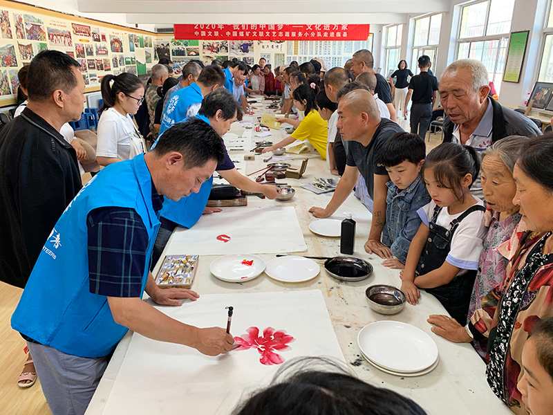 8月20日至22日,中国文联、中国煤矿文联文艺志愿服务小分队走进临县开展2020年“我们的中国梦”——文化进万家活动。中国煤矿文联秘书长、中国煤矿文联志愿者协会主席盛军带队,中国煤矿文联宣传处处长、中国煤矿文联志愿者协会秘书长辛凡忠,中国煤矿文联书协副主席马铭、杨玉剑,副秘书长侯建伟,理事傅澍乾;中国煤矿文联美协理事马凤山、周先宝、侯平远、梁志强等煤矿书法美术家参加文艺志愿服务。活动期间,小分队先后在安业乡前青塘村、临县高级职业中学进行书画作品赠送、现场创作、书法讲座和书画作品点评辅导。