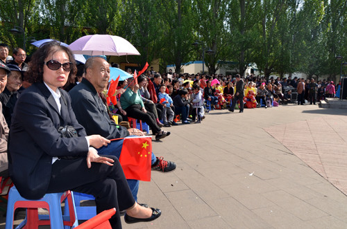 中国广播艺术团电声乐团团长、男高音歌唱家魏金栋与社区居民共同演唱
