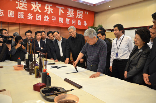 中国文联文艺志愿服务演出团向平朔集团公司赠送了美术、书法艺术品